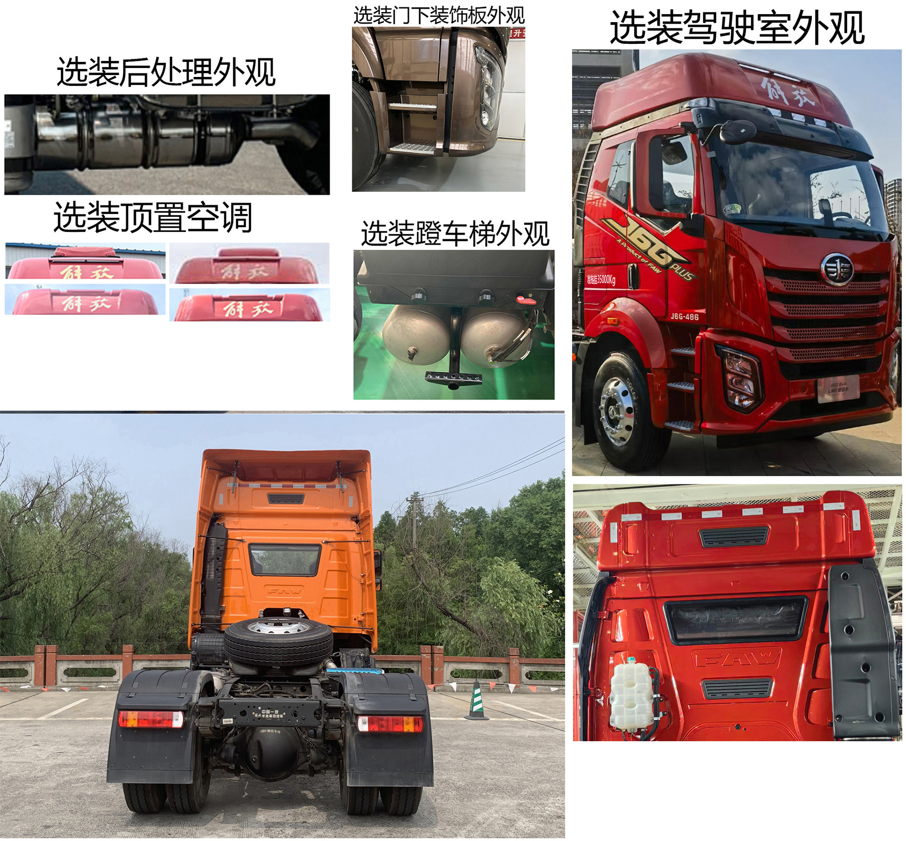 | 备注 | 选装油箱外观,选装底盘布置,选装门下装饰板外观,选装高顶驾驶室,选装驾驶室外观,选装后处理外观,选装顶置空调,选装蹬车梯,选装门下装饰板,遮阳罩,导流罩,高度对应关系:2950,3000,3050,3160(平顶),3450,3500,3550,3600,3660,3710,3750,3800,3870(高顶),3750,3800,3850(平顶带导流罩),3900,3870(高顶带导流罩).长度尺寸对应关系:5920=1400+3600+920,5840=1400+3600+840,6115=1470+3600+1045,6320=1400+4000+920,6515=1470+4000+1045,6240=1400+4000+840.准拖挂车总质量对应关系:35000kg对应整备质量6805kg,准乘3人,35065kg对应整备质量6805kg,准乘2人.35605kg对应整备质量6200kg,准乘3人,35670kg对应整备质量6200kg,准乘2人.前悬与前置距对应关系:1400对应4600;1470对应4670. 对应关系1:高度3710,3750,3870及发动机CA6DK2A36E65,CA6DK2-36E65不配备295/60R22.5 16PR轮胎; 对应关系2:4000轴距仅对应12R22.5,295/80R22.5,11.00R20,12.00R20轮胎,仅对应CA6DK2-36E65发动机 | ||||||||||