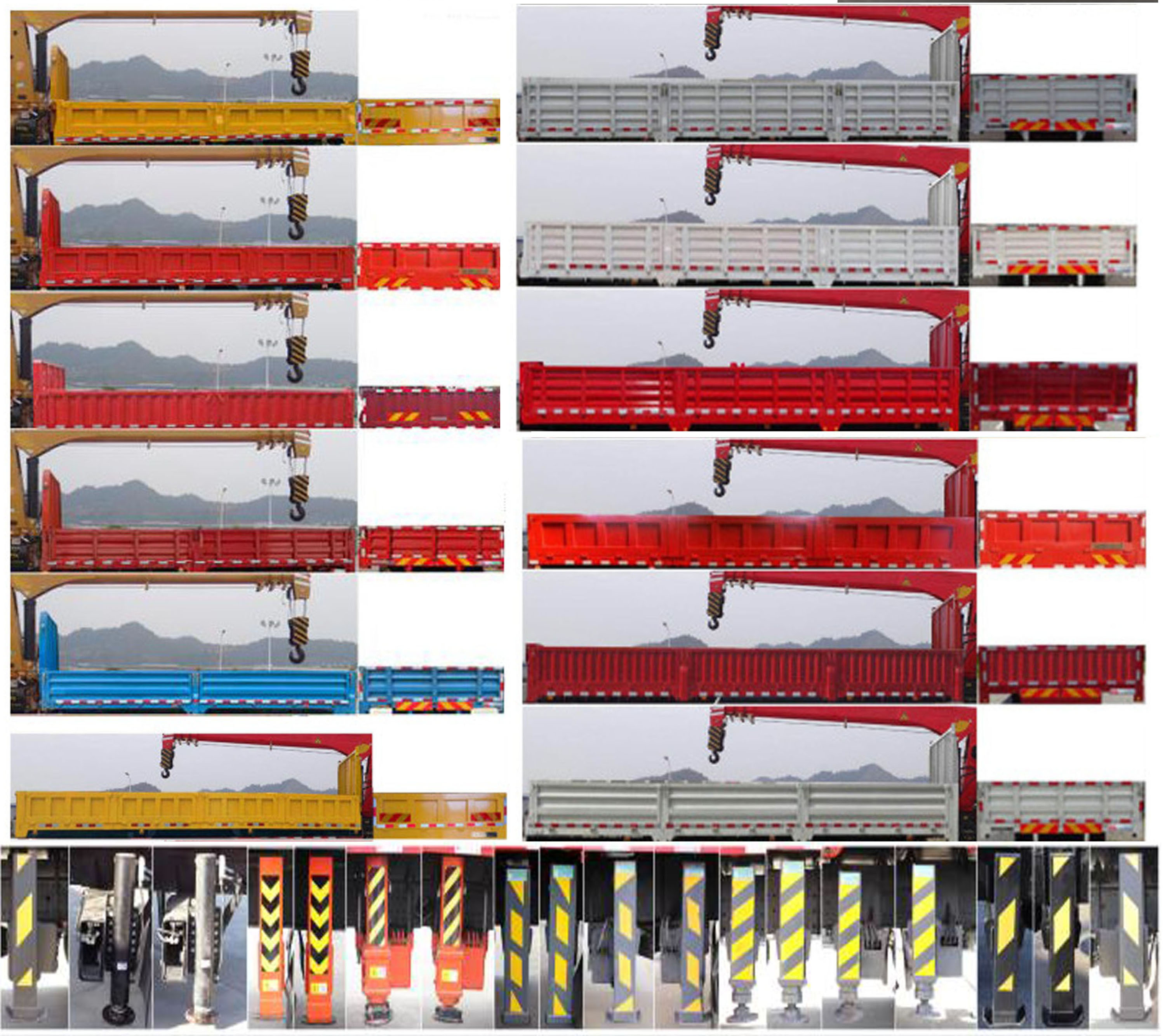 | 备注 | 选装货箱样式,吊机样式,起重机中位座椅和高位座椅及不带座椅,后支腿形状及散热器形状及安装位置,选装车辆尾部带工具箱及工具箱样式。 | ||||||||||