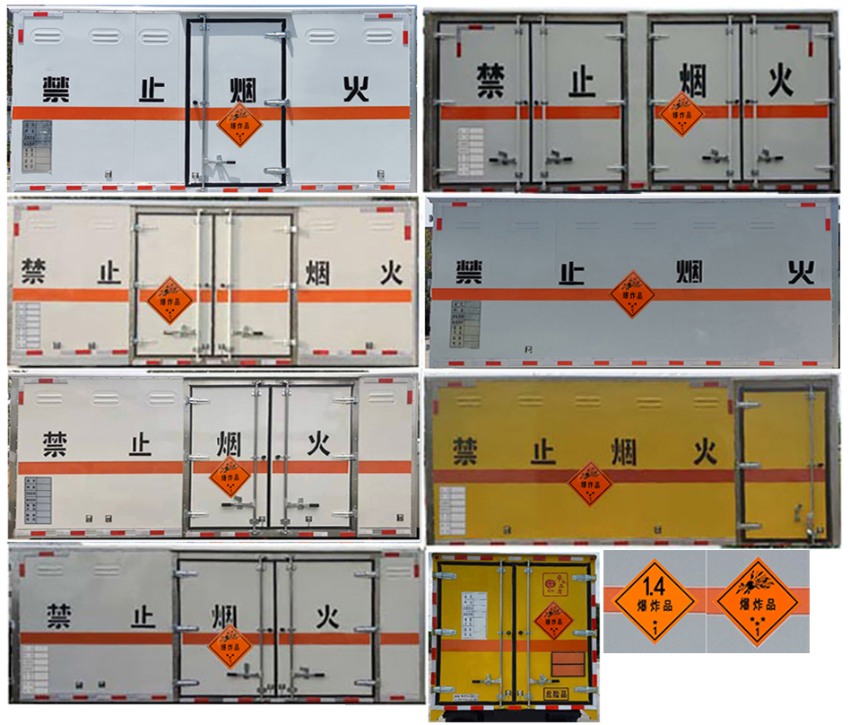 | 备注 | 该车为危险品运输车,车厢顶部封闭且不可开启;运输独立容器(瓶)包装的货物;选装侧开门型式及位置,选装不开侧门,选装不同箱体外观,选装后部样式,安装限速装置,限速80km/h,前轮盘式制动及子午线轮胎的底盘。 | ||||||||||