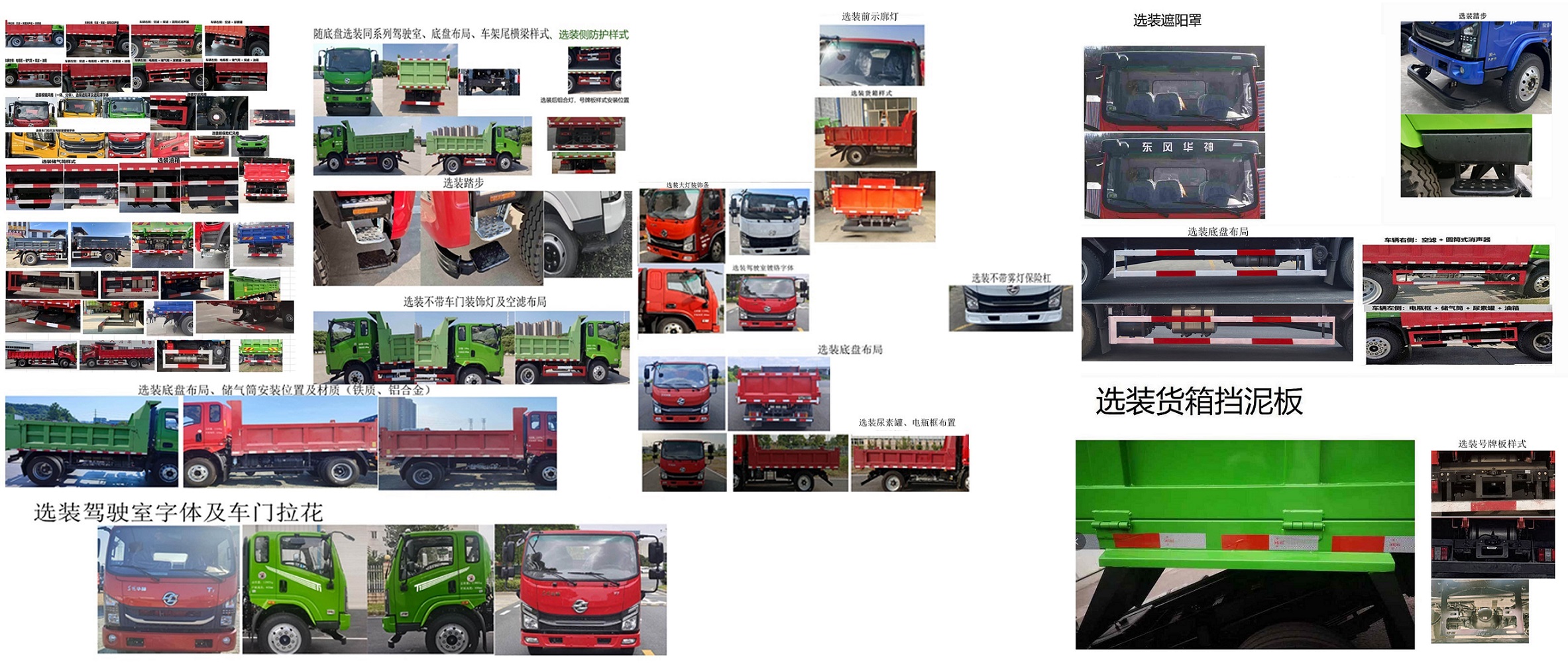 | 备注 | 1.选装空滤、尿素罐、电瓶框等位置布局,遮阳罩,后尾灯及新风格后视镜,选装二级吊踏;选装货厢样式及环保盖,随底盘选装驾驶室及踏步样式,选装驾驶室字体及车门拉花,选装单排驾驶室,选装大灯装饰条,选装储气筒安装位置及材质,选装货箱挡泥板,选装号牌板样式; 2.车厢倾卸方式:后卸; 3.该车型可选装ETC车载装置. | ||||||||||