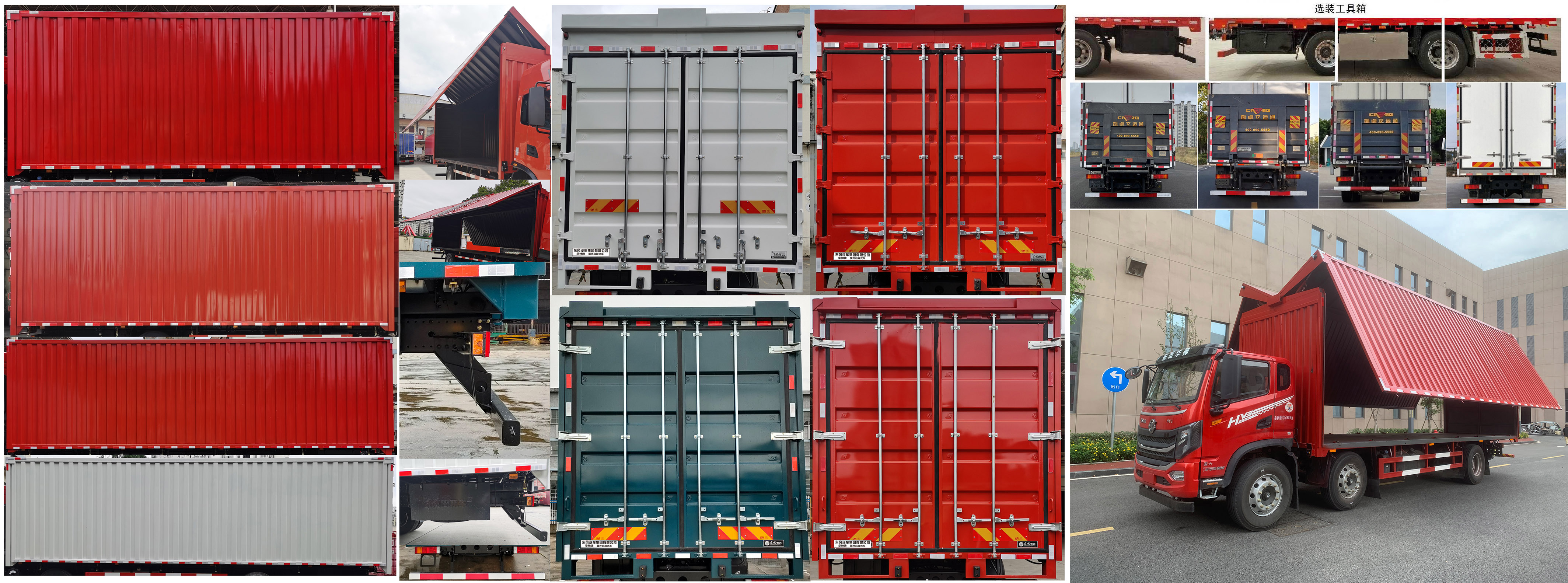 | 备注 | 1.选装视镜风格(一体式,分体式),选装遮阳罩及遮阳罩字体,选装车门拉花及驾驶室字体,选装保险杠风格,选装驻车空调,选装不同样式导流罩,选装尿素罐样式,选装油箱风格(单腔,双腔,铁质,铝质),选装车架尾横梁风格及倒车影像摄像头安装位置,选装底盘布局,选装货厢样式,选装工具箱、翼开状态照片; 2.选装升降尾板,尾板收起时水平长度295mm,尾板质量550kg;选装起重尾板时,安装起重尾板警示标识; 3.该车型可选装ETC车载装置; 4.厢体顶部封闭,不可开启,顶板与侧翼板固定连接在一起开启; 5.外形尺寸参数对应关系(总长=前悬+轴距+后悬)为: 7650=1285+1800+3200+1365,8050=1285+1800+3200+1765,8450=1285+1800+3600+1765,9050=1285+1800+3600+2365,9450=1285+1800+3800+2565,10150=1285+1800+4300+2765,10950=1285+1800+4800+3065,11850=1285+1800+5450+3315,12000=1285+1800+5450+3465; 6.货厢栏板内尺寸长与水平承载面系固点数量的对应关系: 5400,5800,6200,6800,7200,7900/2+16;8700,9600,9800/2+20. | ||||||||||