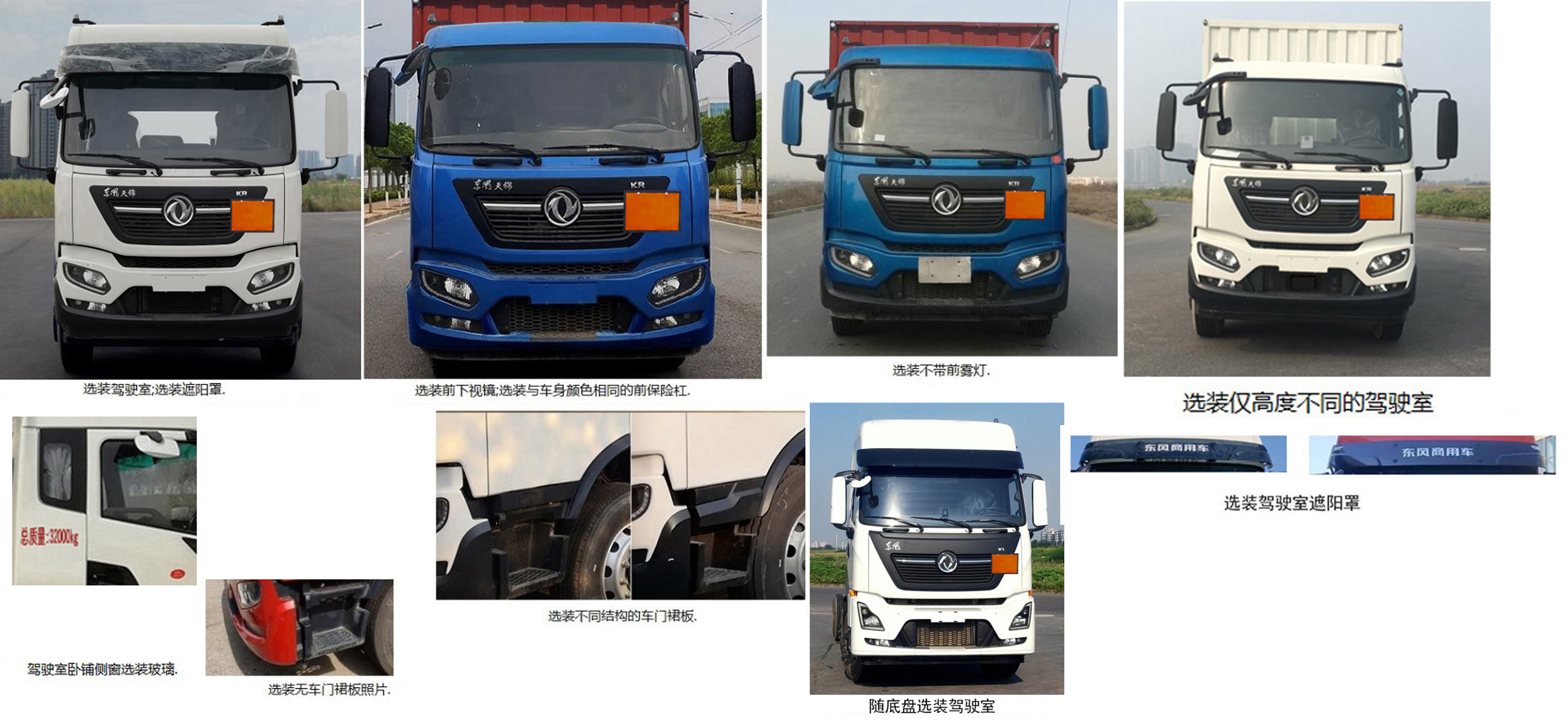 | 备注 | 随底盘选装驾驶室,选装国六标识粘贴位置;选装前雾灯,选装侧窗玻璃,选装前下视镜,选装无车门裙板,选装与车身颜色相同的前保险杠,选装遮阳罩,选装上装结构型式,选装后防护,选装后处理隔热板,选装油箱及安装位置,选装尿素罐安装位置,选装储气筒、电瓶框安装位置。轮胎爆胎应急安全装置型号/生产企业对应关系:3110010-KG8V1/(扬州市奥特瑞汽车电子科技有限公司,湖北源久汽车零部件有限公司);3110010-TF850/(扬州市奥特瑞汽车电子科技有限公司,十堰市华迪汽车零部件有限公司)。 | ||||||||||