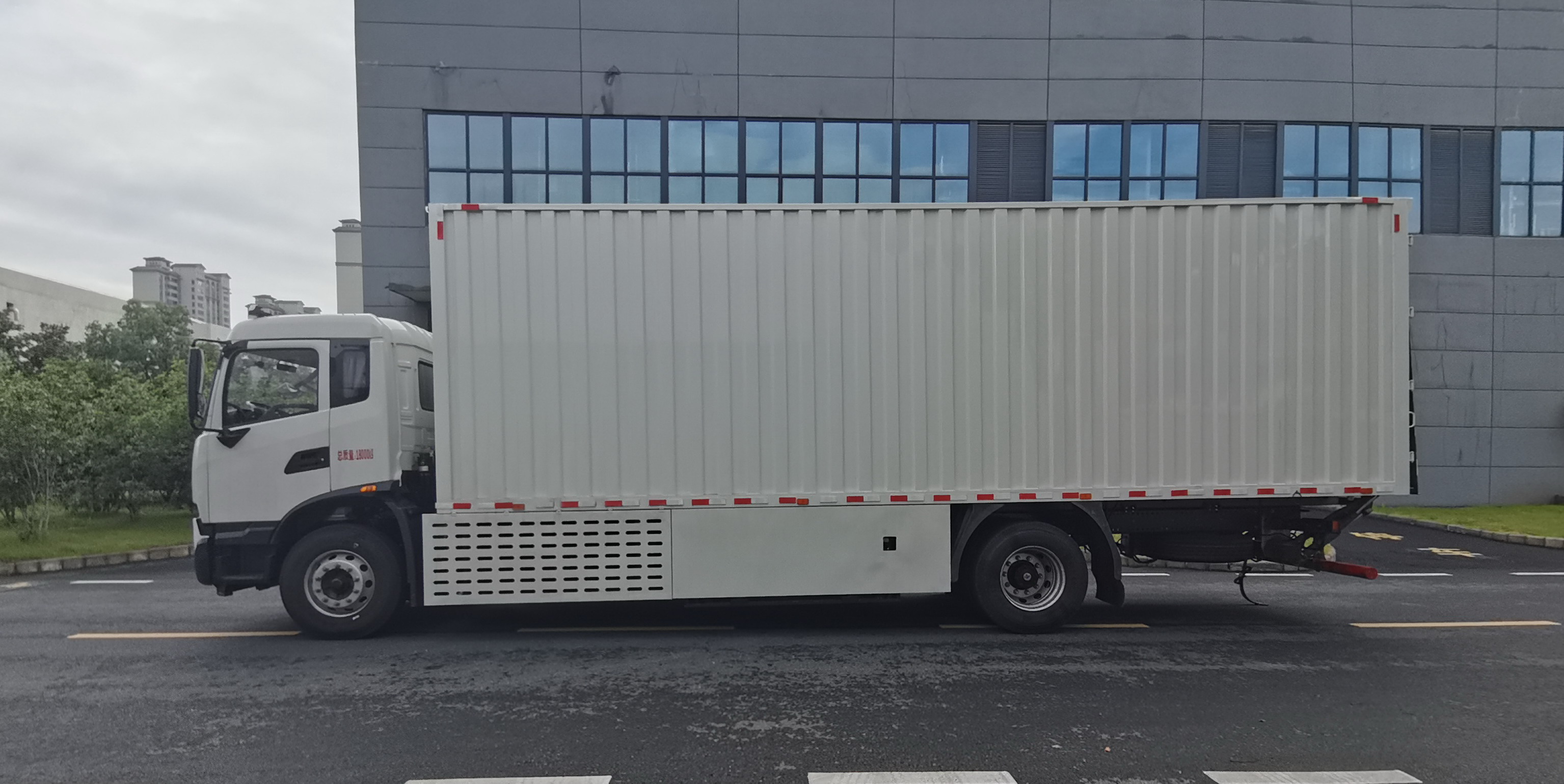 | 备注 | 随底盘选装不同高度的驾驶室,选装侧窗装饰板,选装驾驶室顶部导流罩,驾驶室前部选装东风商用车企业标识;侧面选装开门和不开门,厢体选装平板和瓦楞板结构;选装尾板,尾板质量为550kg,尾板收起状态时的水平长度为295mm,选装尾板时仅选用断面尺寸φ121的后防护,后防护材质:Q235,连接方式:焊接,离地高度470mm。 | ||||||||||