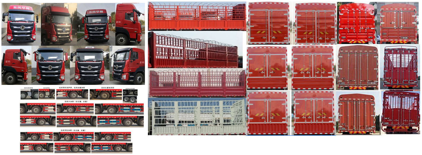 | 备注 | 1.选装货厢形式;随底盘选装同系列驾驶室、顶置空调;选装油箱、尿素罐、电瓶框布置位置;选装油箱材质,选装轮辋样式; 2.该车型可选装ETC车载装置; 3.车辆第四轴为可提升桥,仅允许空载状态下提升. | ||||||||||