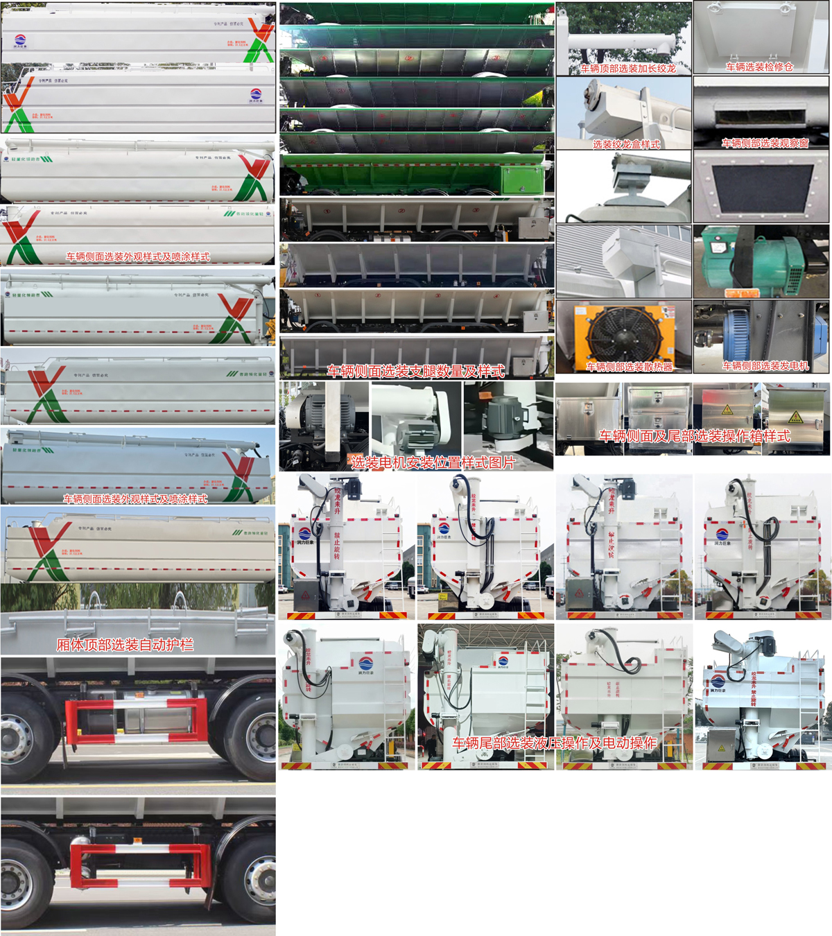 | 备注 | 随底盘选装驾驶室.选装电动操作和液压操作样式,选装左侧或右侧安装发电机,散热器样式.选装加长绞龙样式,选装绞龙盒样式,选装侧部观察窗样式.侧部选装散热器.车辆侧部选装底部支撑. | ||||||||||