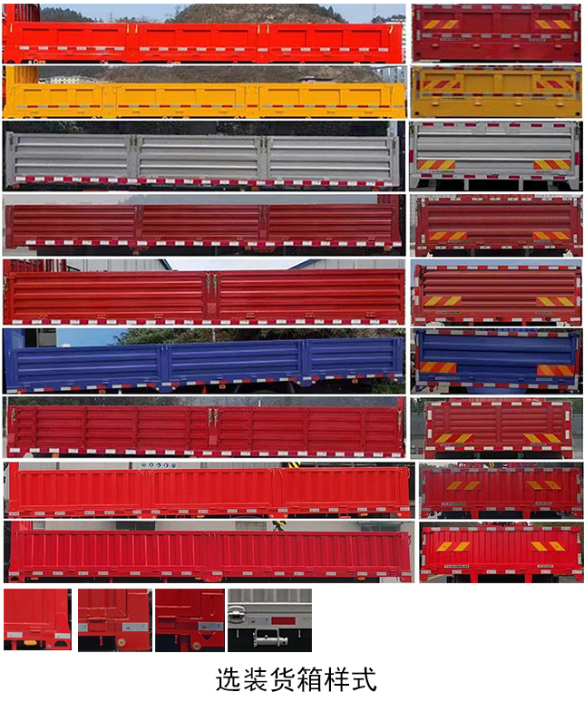 | 备注 | 1.该车型可选装ETC车载装置;2.选装货箱样式;3.选装操纵座椅样式,操纵样式,爬梯,后下防护外观,后支腿样式,选装不带后支腿;4.选装散热器安装位置,登车梯样式,托绳架,拉线盒;5.整备质量/系固点对应关系:12080/24,11000/32; | ||||||||||